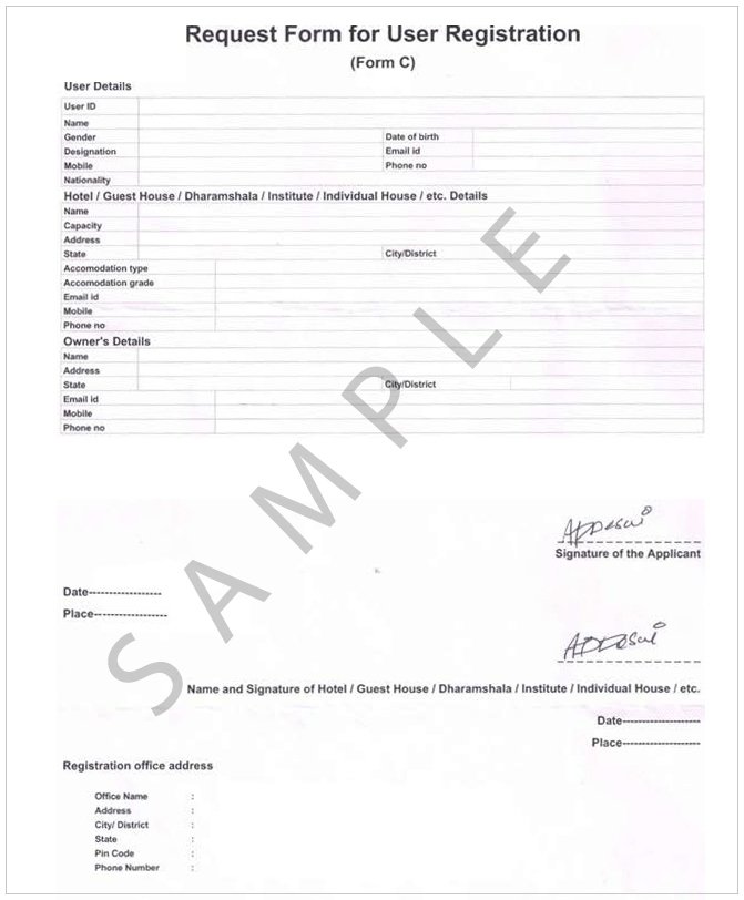 Any Hotel/Guest House/Dharamshala/Individual House/University/Hospitals/Institute/other who provide accommodation to foreigners must submit the details of residing foreigners in form C to the Registration Authorities.