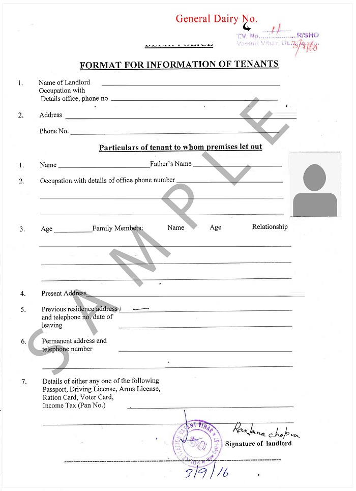 TVF is a form in which the owner of the property who has rented his house or apartment to an expat takes the details of his tenant. This form is verified by the police department and General Diary Number is received on the Tenant Verification Form. This document is normally requested by the FRRO in case of Visa Registration & Extension.